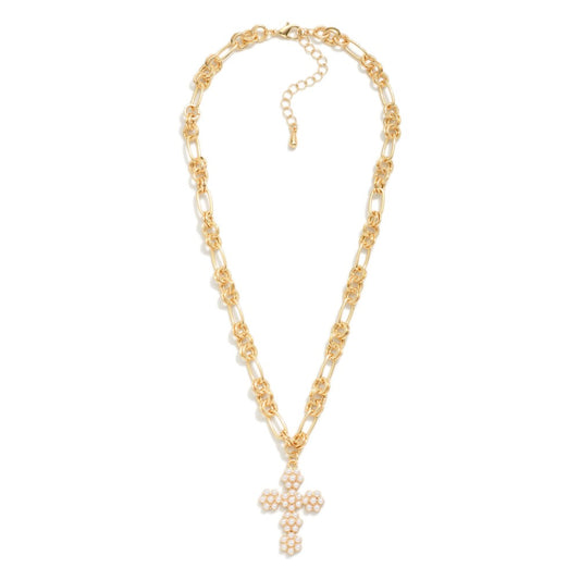 Heavenly Pearl Cross Necklace