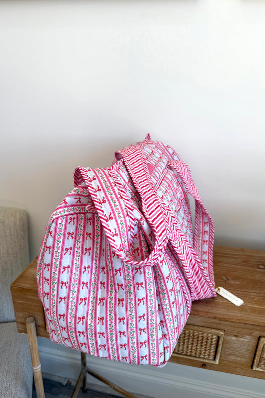 Bow & Blossom Large Quilted Travel Bag