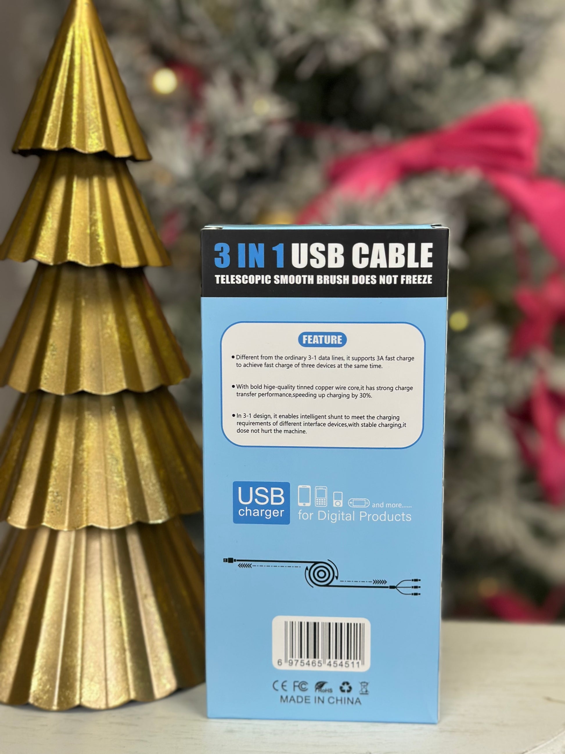 Retractable 3 iin 1 Universal Fast Charging Cable