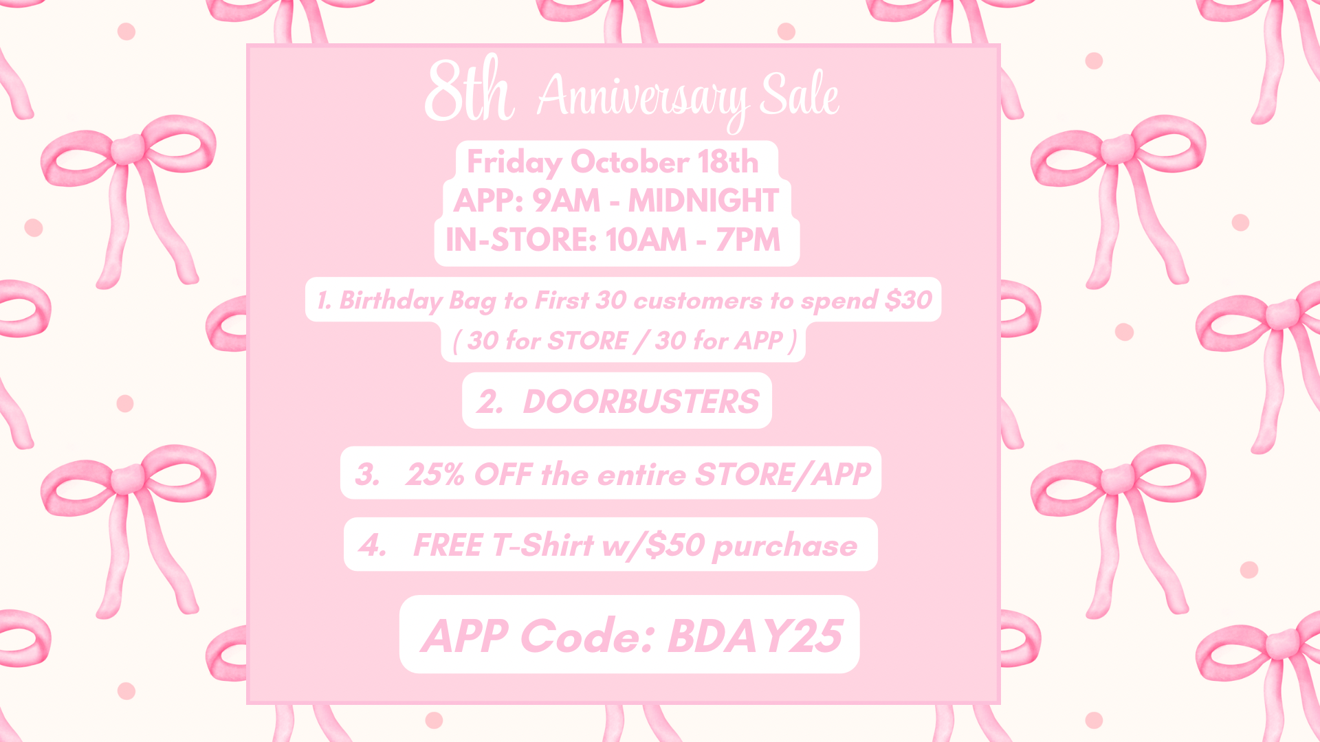 • 📱APP 9AM - Midnight (Code: BDAY25 )