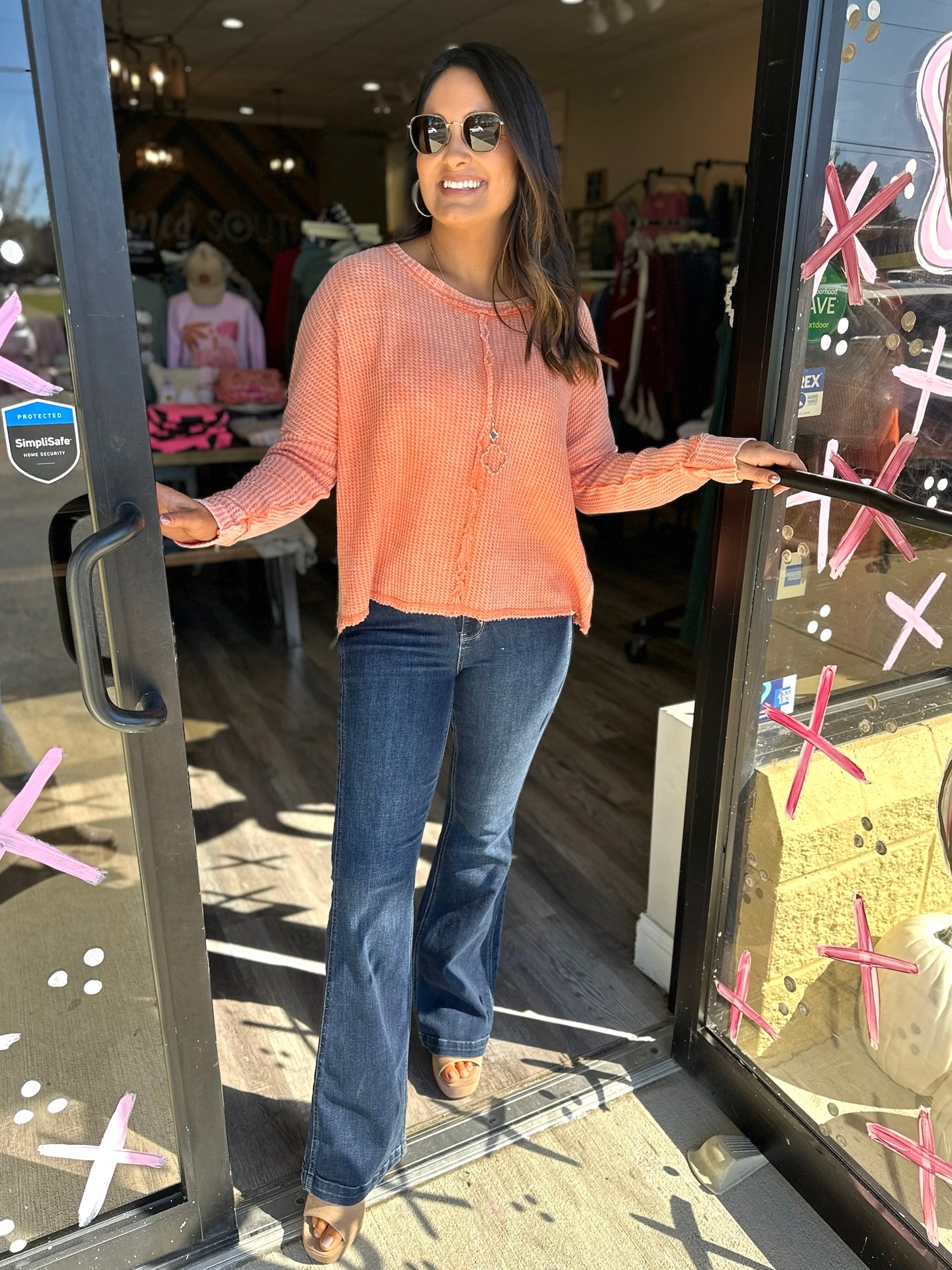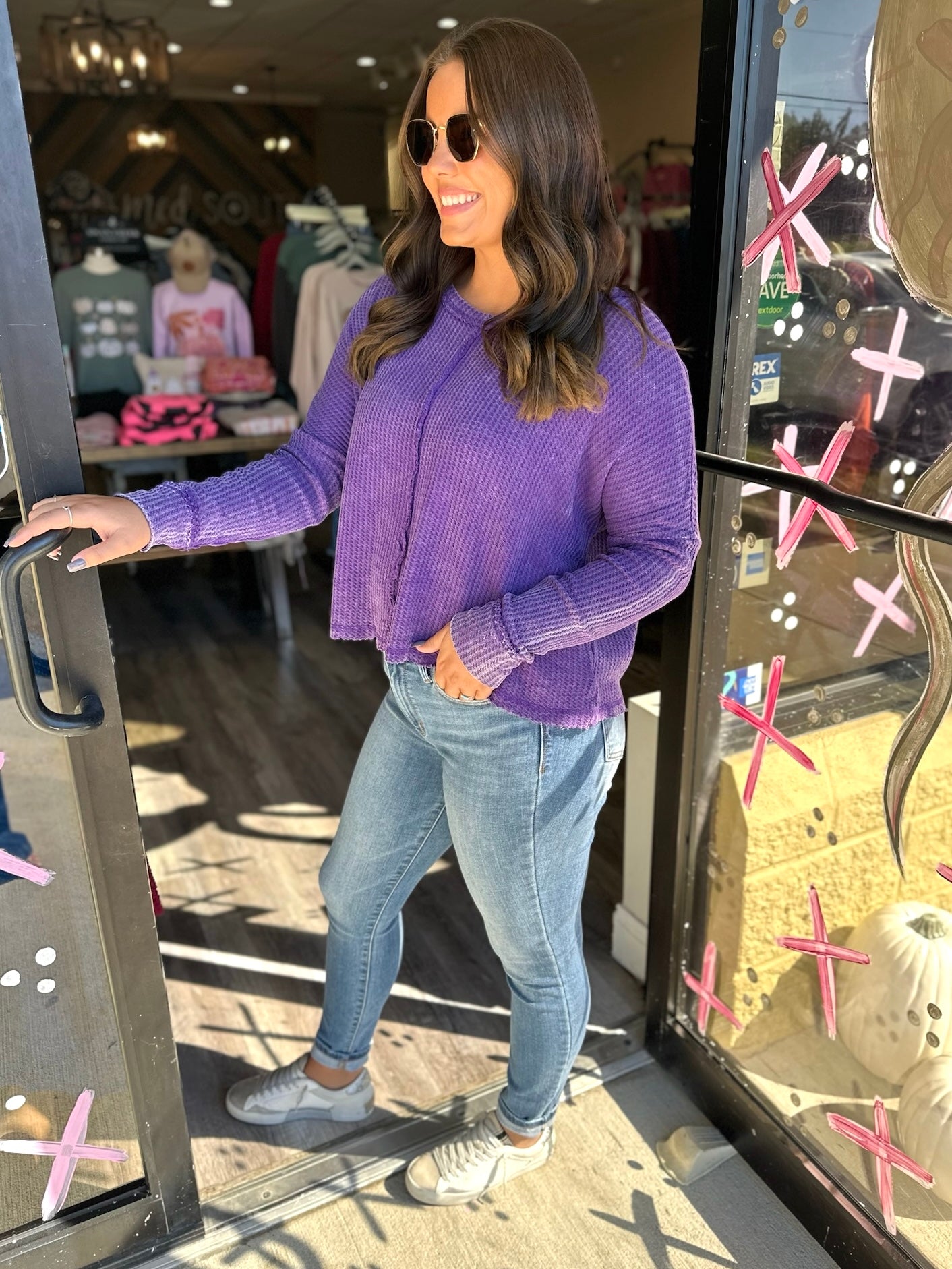WASHED BABY WAFFLE LONG SLEEVE TOP