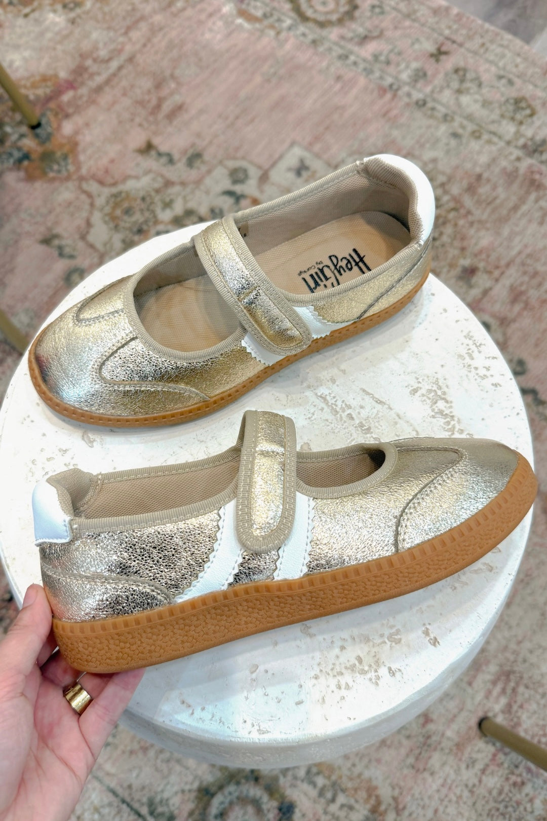 Easy, comfy, and just the right amount of shine—the Calm Down in Gold (Metallic) by Corkys takes your everyday casual shoe and gives it a glow-up. Designed with a soft metallic finish, contrast stripe detail, and an easy hook-and-loop strap, this pair is lightweight, flexible, and made for all-day wear without feeling bulky.