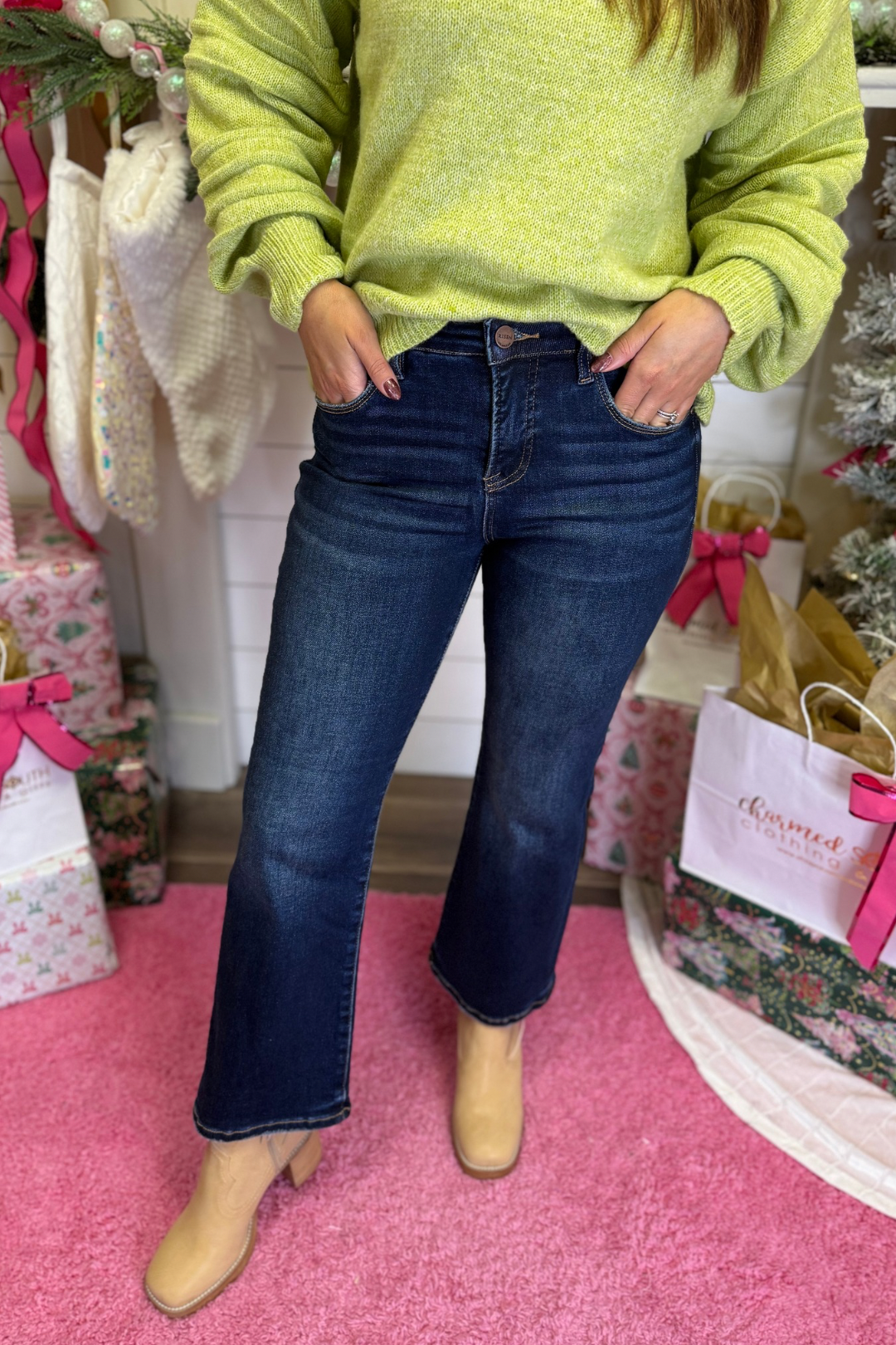 Slip into these fabulous deep blue slightly cropped jeans and feel the magic of built-in tummy control doing its thing. With a flattering high-rise cut and straight style, they're designed to smooth, shape, and make you feel confident from waist to ankle.