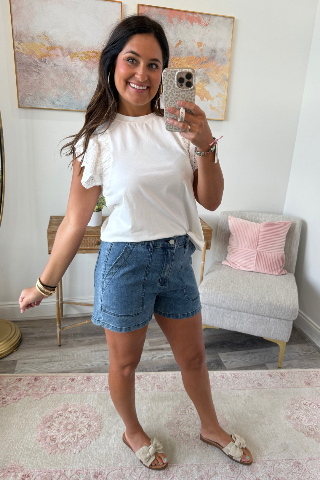 Don’t you dare miss out on these shorts! Flattering fit, amazing stretch and the cutest style. Fit runs roomy. Brittany is wearing the small, but has room. We suggest sizing down 1 size unless you like the loser look.