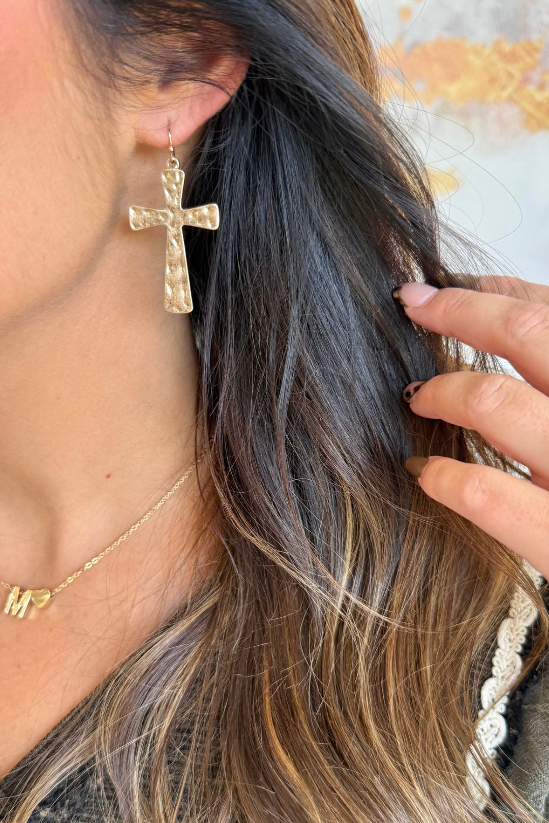 Complete the look with our •Hammered Metal Cross Earrings • Brass Monogram Initial Necklace & Our Judy Blue Side Note Jean