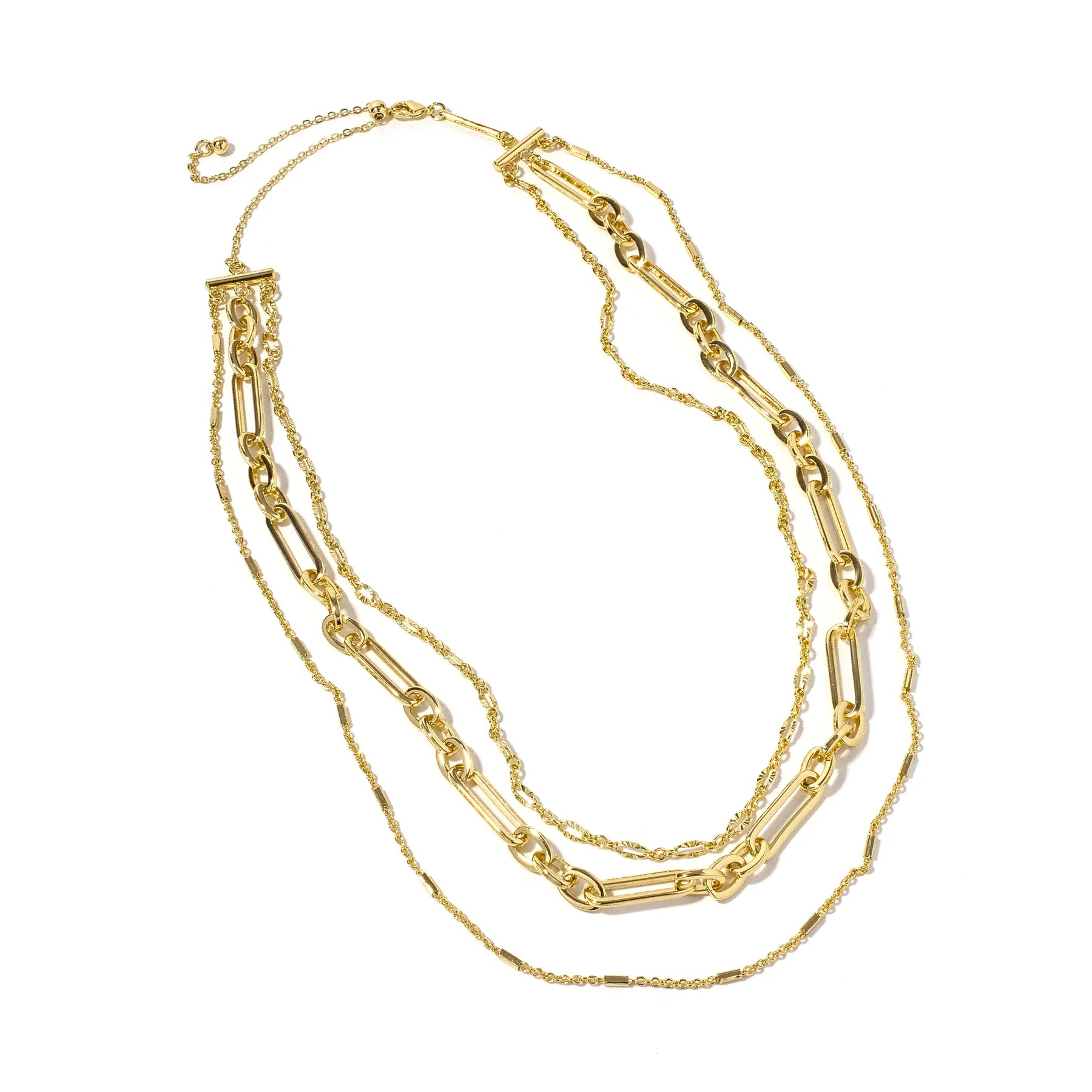 This necklace features a a sophisticated chain link design crafted from mixed metals. This elegant piece effortlessly blends classic style with modern refinement, making it an ideal choice for both everyday wear and special occasions. Its versatile design adds a subtle yet striking touch to any ensemble.