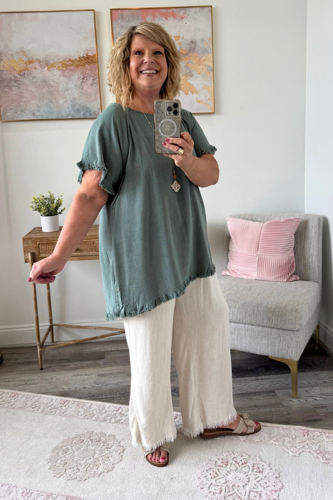 Favorite Linen Frayed Top - Curvy