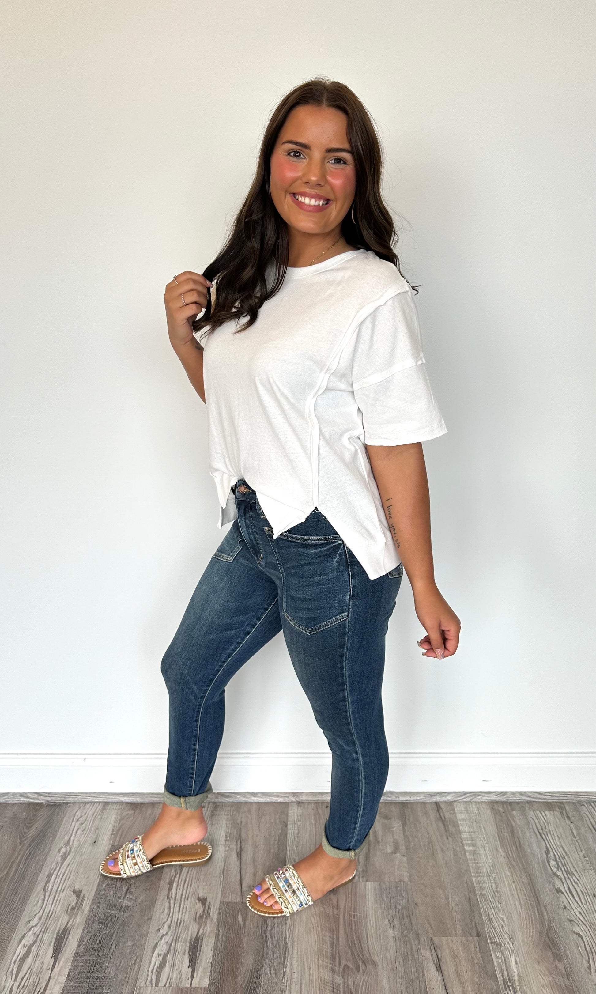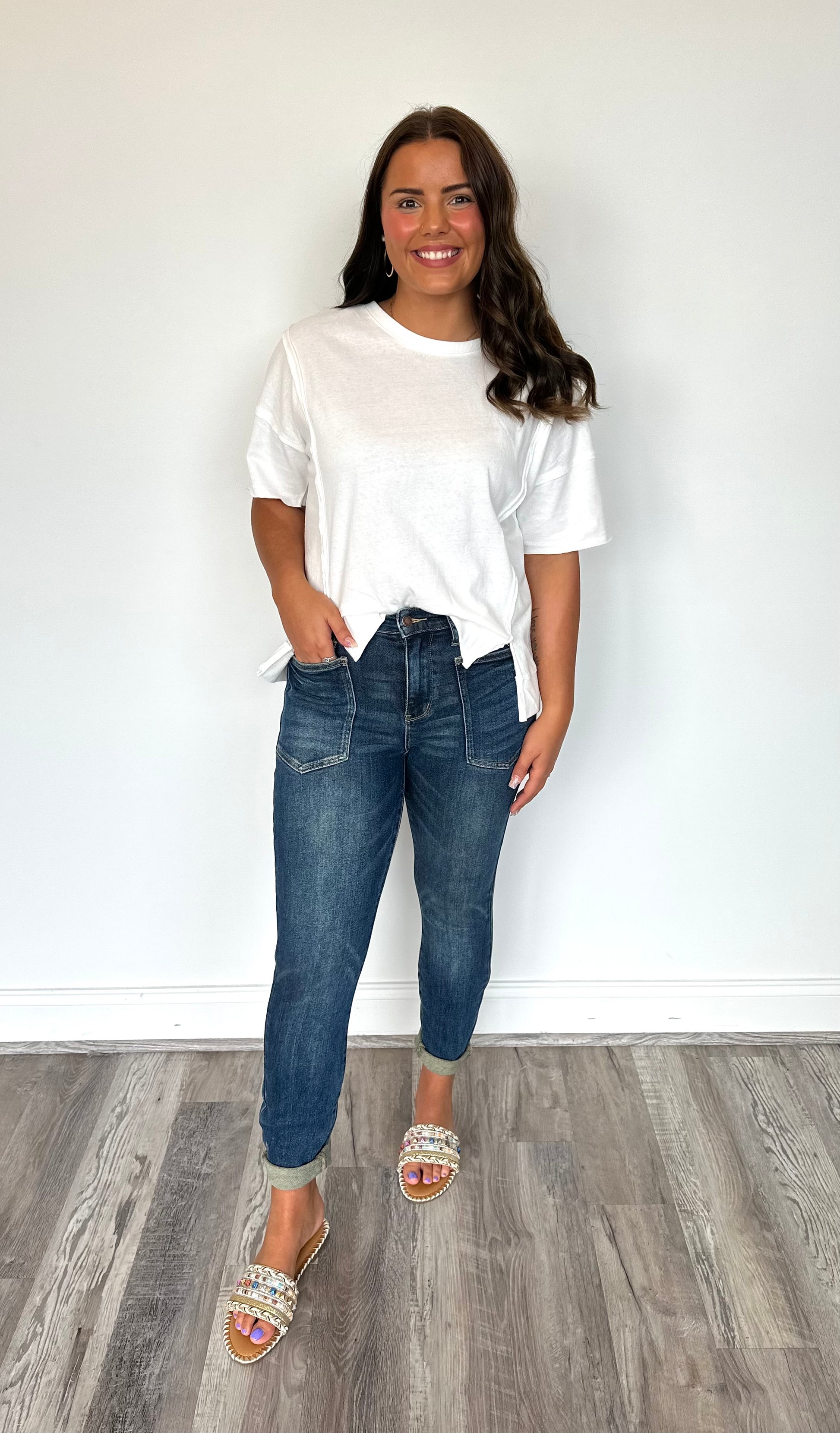 Our Judy Blue Retro Skinny is one of the best! This jean has such cute detailed pockets and amazing stretch. We suggest to size down one size. Nicole is wearing the 5.