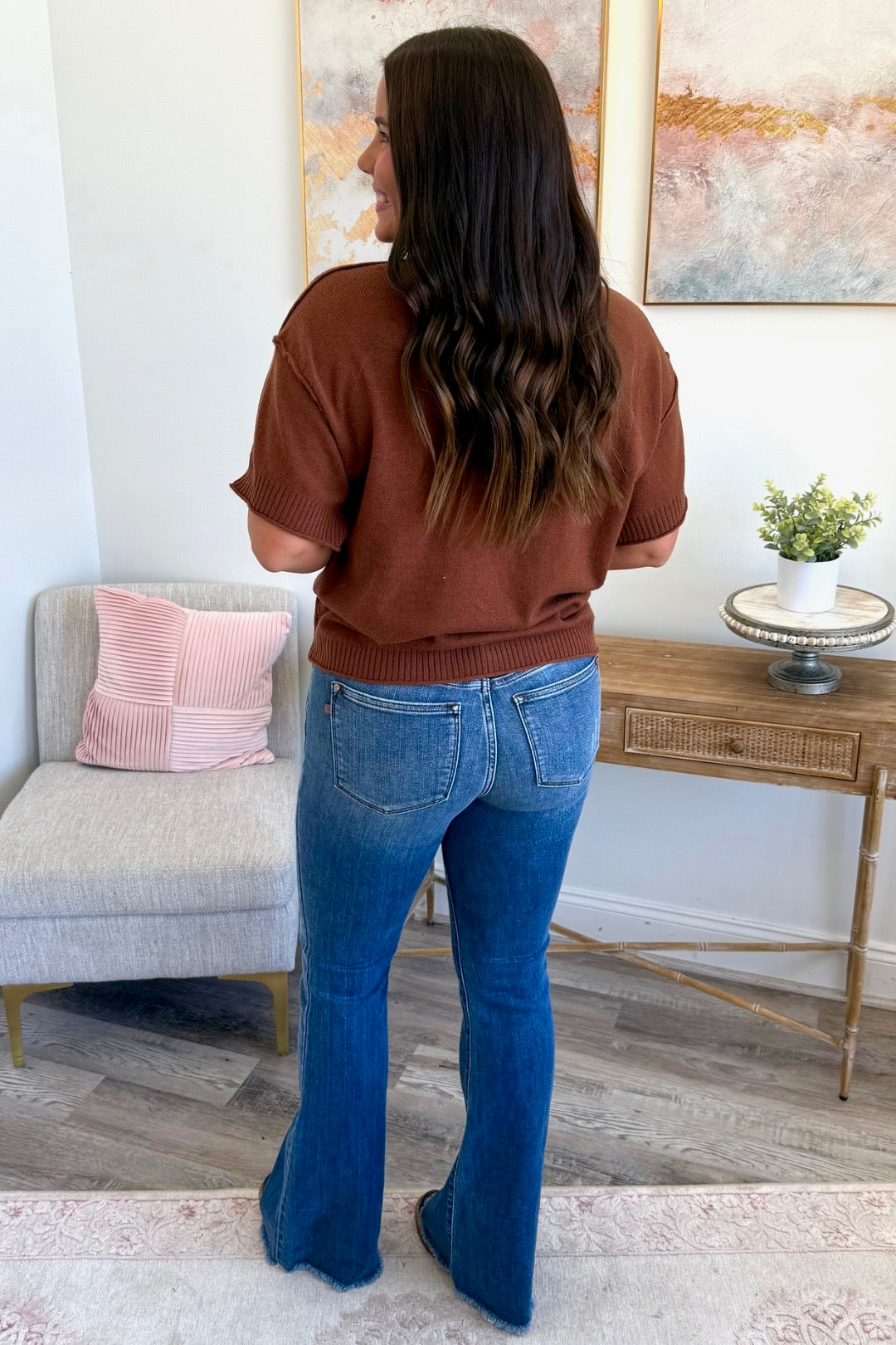 JUDY BLUE! Elevate your style with our solid classic flares featuring a trendy frayed bottom. These flares are designed with an incredible stretch that ensures comfort and easy movement, allowing you to look chic without sacrificing freedom of motion.