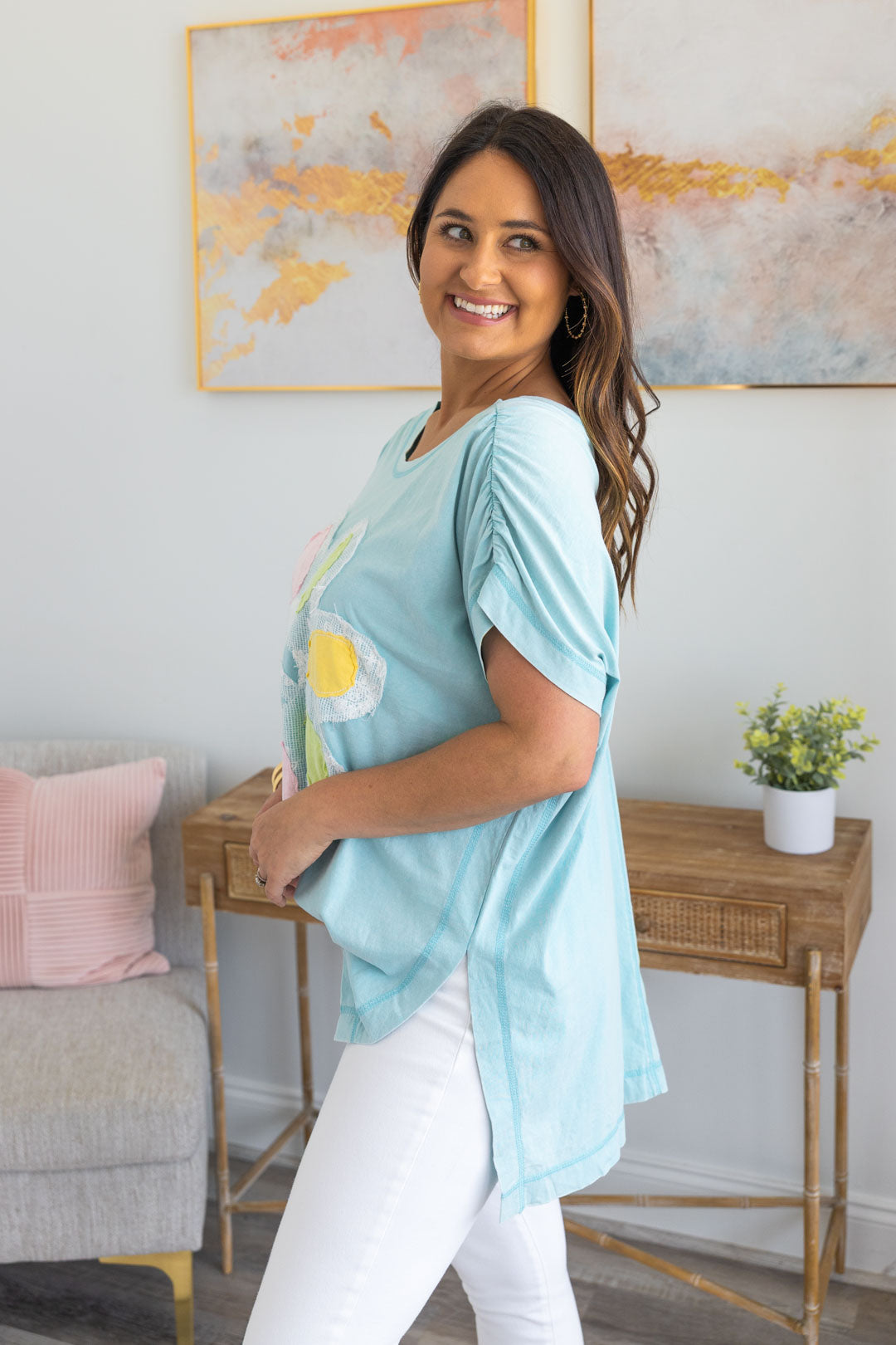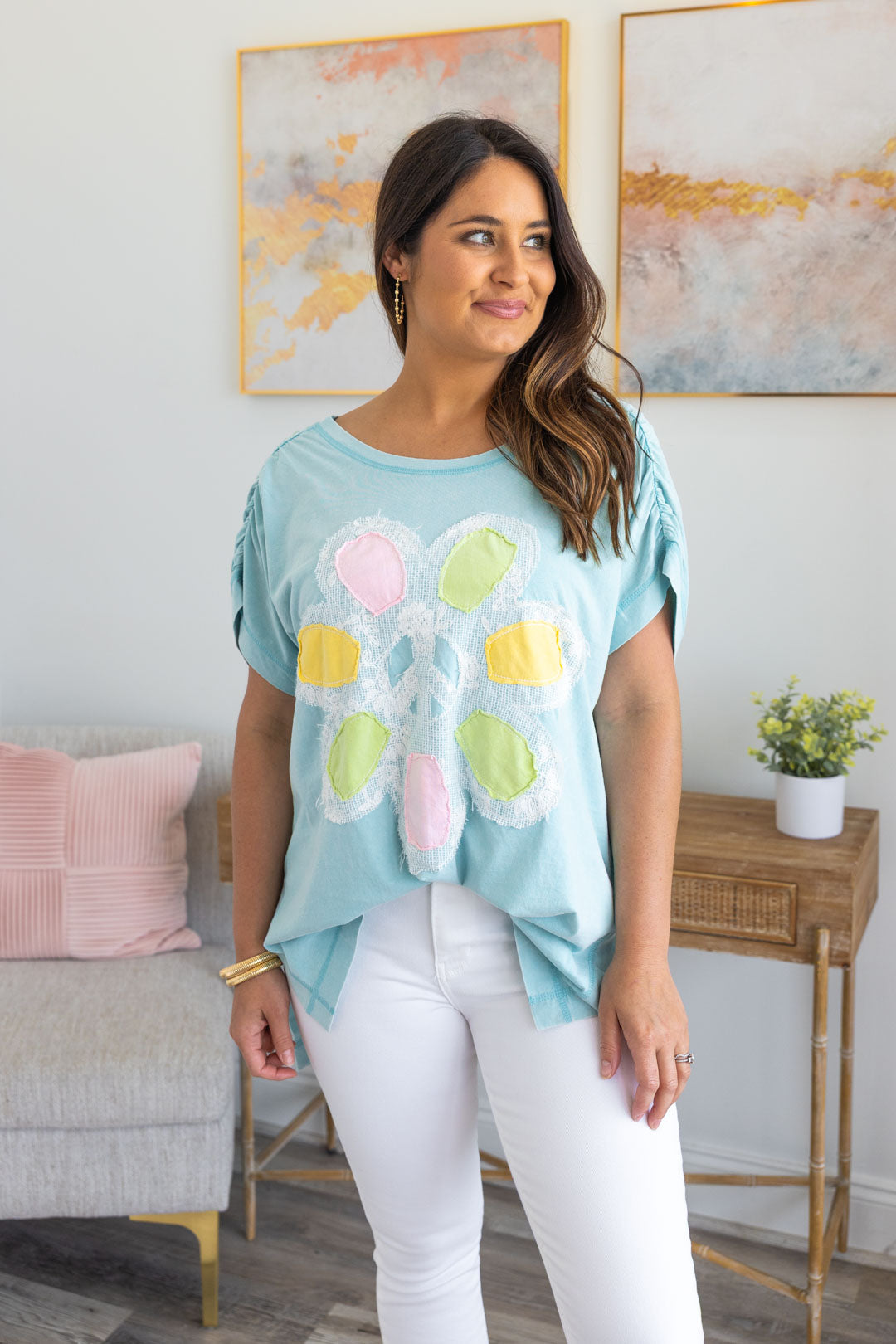Get retro-ready with our dreamy Peace & Petal Top! Designed with a wide neckline you can style on or off the shoulder and playful scrunched sleeves, this breezy top brings vintage vibes to your summer wardrobe. The relaxed fit drapes beautifully, with a slightly longer back for effortless coverage. Runs roomy — we recommend sizing down one size.