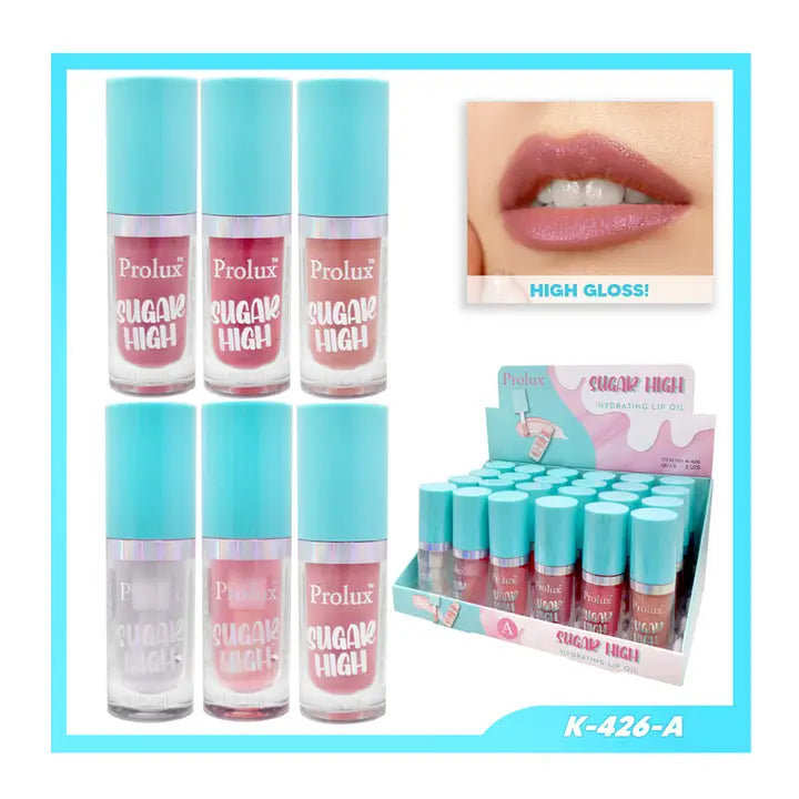 Sugar High Hydrating Lip Oil. A luxurious, nourishing lip oil that delivers a burst of hydration while adding a natural, glossy finish. Infused with moisturizing ingredients, this lip oil helps to soothe and hydrate dry lips. Its glossy formula glides on effortlessly, providing long-lasting moisture and a subtle shine. Perfect for daily use or as a glossy topper over favorite lip color. Sweet scent. Assorted in 6 shades