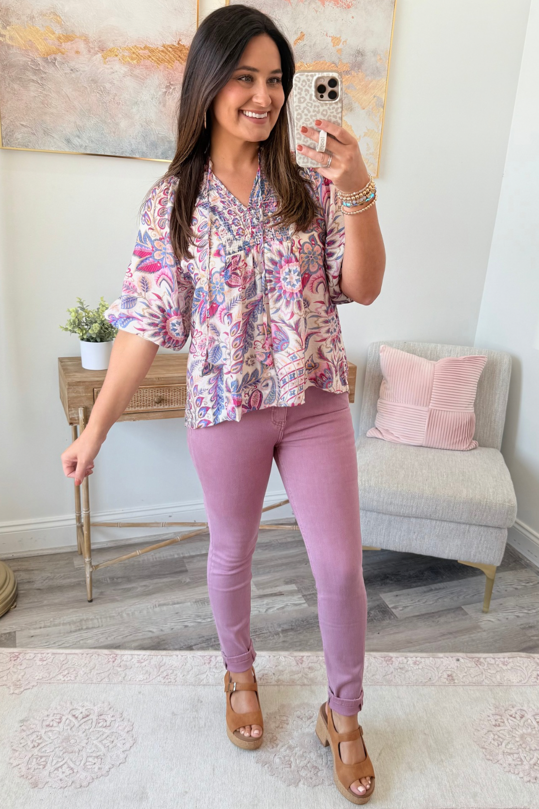 SIZING: Brittany is wearing the size 26 and is a size 3/5 in pants. The fit is true to size. We suggest going with your true size.